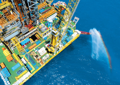 圖為南海神狐海域正在從水深1266米海底以下203-277米試采“可燃冰”的作業(yè)平臺(tái)?! 」′h攝(人民視覺(jué))