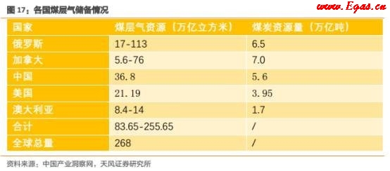 全球煤層氣儲量達268萬億立方米,目前已有74個國家發(fā)現(xiàn)蘊藏有煤炭資源,其中90%分布在12個產(chǎn)煤國家,儲備量前五的國家分別是:俄羅斯、加拿大、中國、美國和澳大利亞。