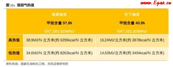 煤層氣是指儲存在煤層中以甲烷為主要成分、以吸附在煤基質(zhì)顆粒表面為主、部分游離于煤孔隙中或溶解于煤層水中的烴類氣體,是煤的伴生礦產(chǎn)資源,屬非常規(guī)天然氣,是近一二十年在國際上崛起的潔凈、優(yōu)質(zhì)能源和化工原料。煤層氣或瓦斯的熱值跟甲烷(CH4)含量有關,與其他燃料相比較,其熱值是通用煤的2-5倍,1立方米純煤層氣的熱值相當于1.13kg汽油、1.21kg標準煤,其熱值與天然氣相當,可以與天然氣混輸混用,而且燃燒后很潔凈,幾乎不產(chǎn)生任何廢氣,是上好的工業(yè)、化工、發(fā)電和居民生活燃料。煤層氣熱值具體如下表所示: