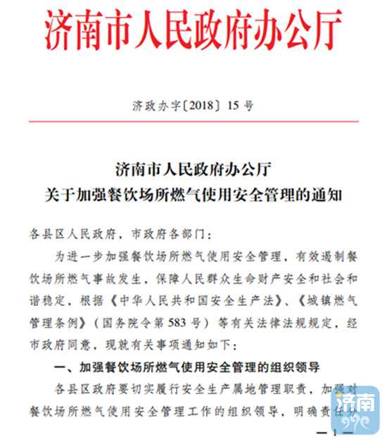 從濟(jì)南市安監(jiān)局獲悉,為進(jìn)一步加強(qiáng)餐飲場(chǎng)所燃?xì)馐褂冒踩芾?,有效遏制餐飲?chǎng)所燃?xì)馐鹿拾l(fā)生,保障人民群眾生命財(cái)產(chǎn)安全和社會(huì)和諧穩(wěn)定,濟(jì)南市政府辦公廳近日印發(fā)《關(guān)于加強(qiáng)餐飲場(chǎng)所燃?xì)馐褂冒踩芾淼耐ㄖ罚ㄒ韵潞?jiǎn)稱《通知》),明確要求各縣區(qū)每半年要至少開展一次餐飲場(chǎng)所燃?xì)馐褂冒踩珜m?xiàng)整治活動(dòng)。