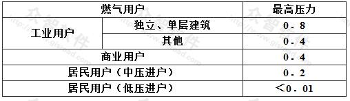3 室內(nèi)燃氣管道壓力大于0.8MPa的特殊用戶設(shè)計應(yīng)按有關(guān)專業(yè)規(guī)范執(zhí)行。
