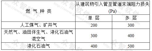 2 當由樓幢調(diào)壓箱供應(yīng)低壓燃氣時,室內(nèi)低壓燃氣管道允許的阻力損失,也可按本規(guī)范第6.2.8條計算確定。