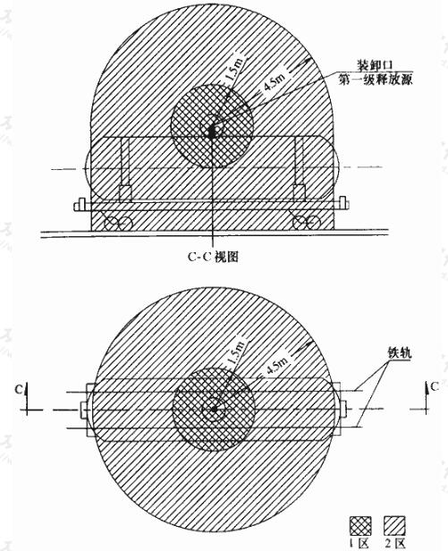 2 以裝卸口為中心,半徑為4.5m,1區(qū)以外以及地面以上的范圍內劃分為2區(qū)。