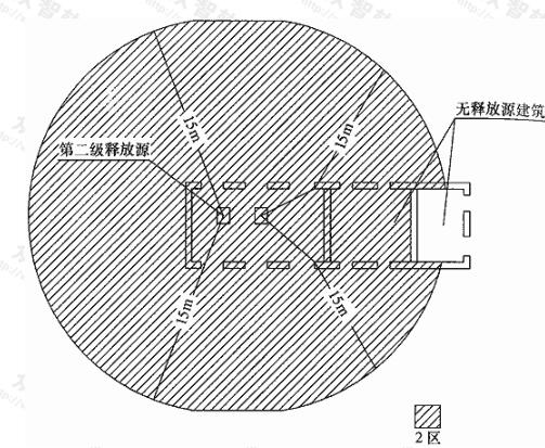 1 以釋放源為中心,按本附錄第E.0.2條規(guī)定的范圍內劃分為2區(qū);