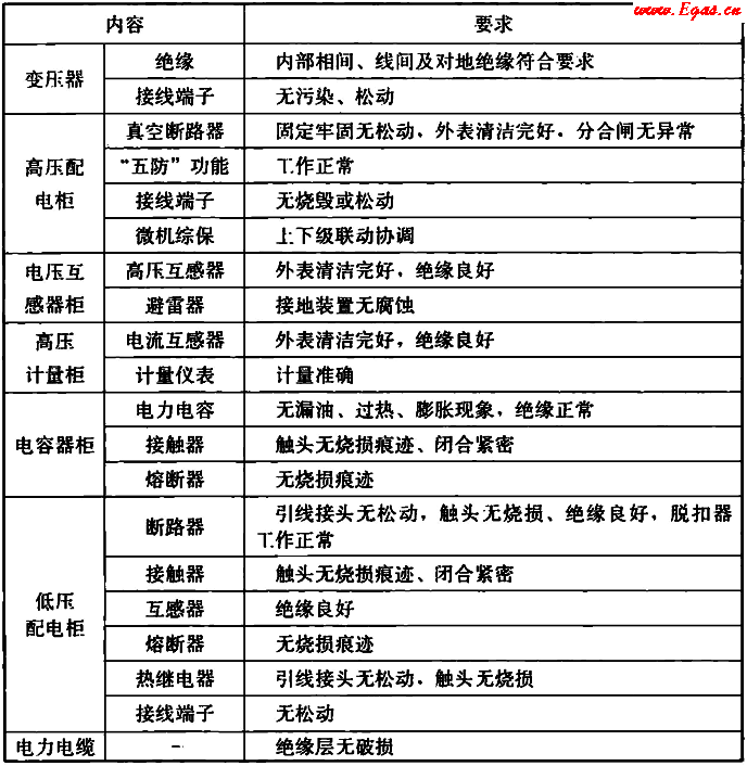 表5.4.6 供電系統(tǒng)設(shè)備設(shè)施維護內(nèi)容及要求