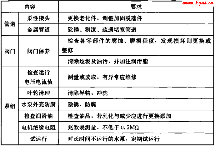表5.7.5 給水排水系統(tǒng)維護內(nèi)容及要求