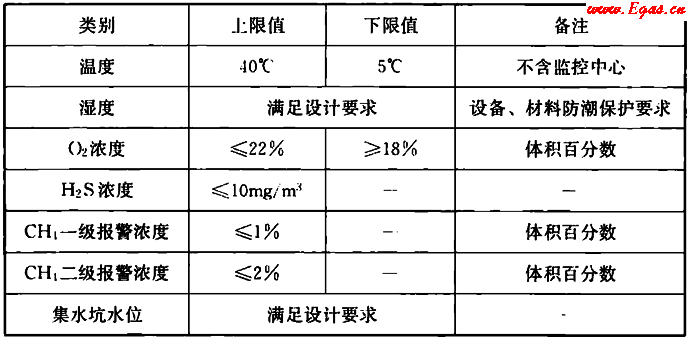 表5.6.4 主要環(huán)境參數(shù)報警設(shè)定值