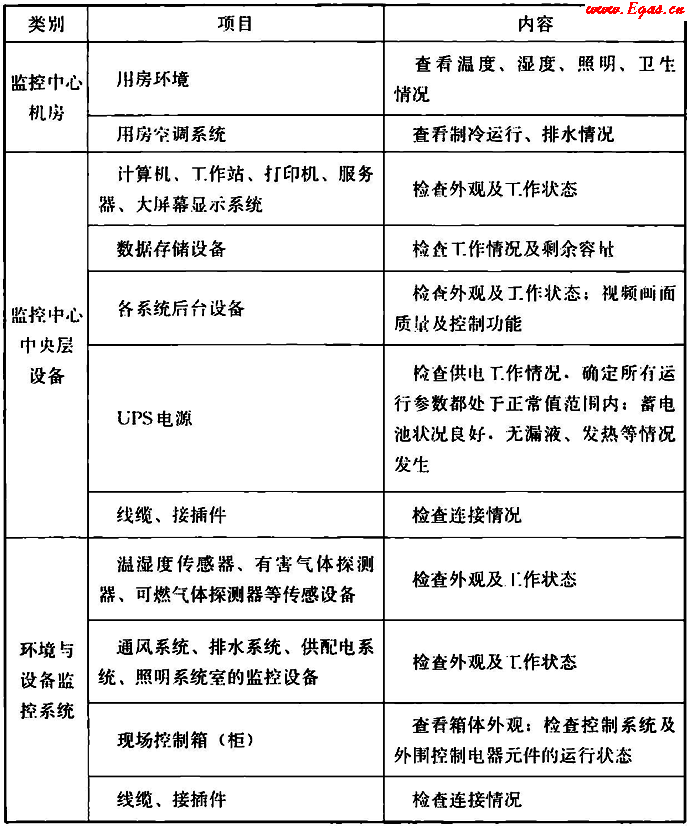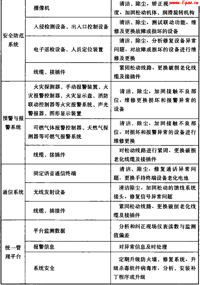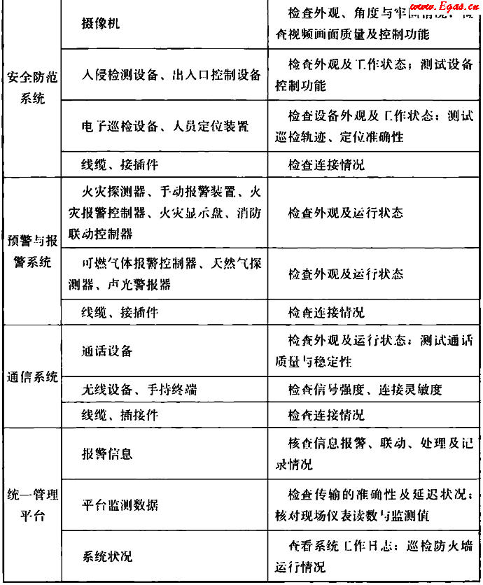 表A 監(jiān)控與報(bào)警系統(tǒng)巡檢主要內(nèi)容