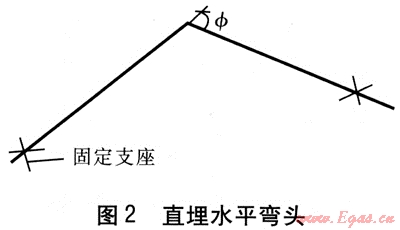 直埋水平彎頭見圖2,要求在滿足疲勞壽命和強(qiáng)度條件[3,4]的前提下進(jìn)行優(yōu)化選型,使壁厚和曲率半徑達(dá)到最經(jīng)濟(jì)。