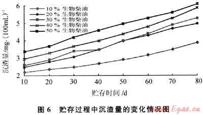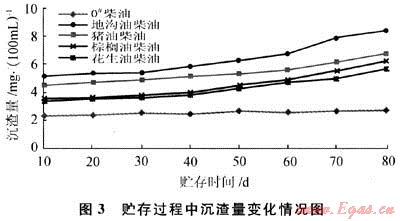 2.1.3 生物柴油貯存過程沉渣的變化情況