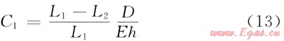 上式是在假設(shè)整個套管是均勻的,而且在整個長度上都能變形的條件下得到的。在總長為L1的套管上,有長度為L2的套管段被水泥漿固結(jié),此時總的變形系數(shù)為: