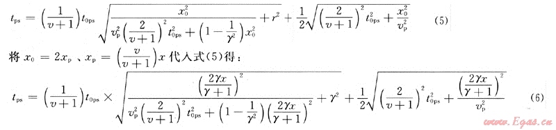 ;vp、vs分別為縱波速度和橫波速度;t0p、t0ps分別為P波、PS波時距曲線與零偏移距道時間軸的交點。將式(2)、(3)代入式(1)后得: