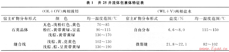 從古地溫梯度圖可以看出,井25井須家河組地層在演化過程中最高溫度為135℃,而包裹體均一溫度存在的第三個(gè)范圍,即130~155℃部分超出了須家河組的古地溫范圍。此現(xiàn)象應(yīng)是由于外來深層高溫流體侵入造成的。這與前述的根據(jù)包裹體鹽度較低所推測的存在高演化油氣充注的結(jié)果一致。由此可見須家河組儲(chǔ)層接受了深層流體及烴源的貢獻(xiàn),推測可能發(fā)生在喜山運(yùn)動(dòng)期,也即四川盆地普遍存在的天然氣重新分配與調(diào)整期。因此高溫流體對應(yīng)這一成藏期。