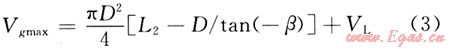 管式液塞捕集器的最大波動體積Vgmax與儲液段尺寸關系見式(3):
