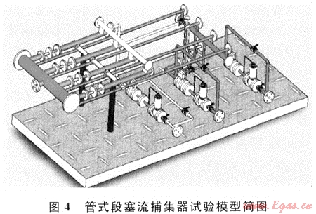 實驗環(huán)道的主要設備是管式液塞捕集器,根據(jù)實驗流量,設計為4管式,結構形式與目前生產用的一致。其三維模型如圖4所示。