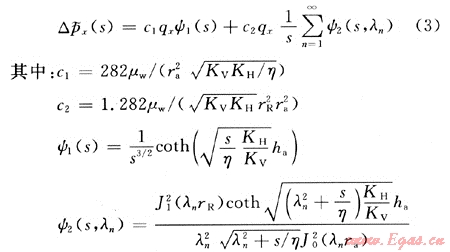 則在拉普拉斯空間,由定水侵速度在氣水界面處產(chǎn)生的壓力降為: