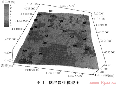 綜合利用地質(zhì)、地震和測井資料,建立精細的沉積微相模型,揭示了砂體的空間幾何展布形態(tài)。在相控基礎(chǔ)上進行孔隙度、滲透率的研究,建立儲層屬性模型,則進一步揭示了儲層非均質(zhì)性,指明了有利儲層發(fā)育區(qū),為進一步的油氣田開發(fā)指明了方向。實踐證明,借助于沉積微相和屬性建模方法,使該區(qū)的新鉆井符合率有顯著提高。