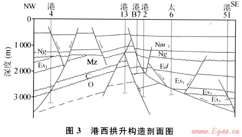 1) 由于港西發(fā)育淺層披覆構造,形成披覆背斜,而對于圈閉條件來說,背斜圈閉的封閉性是最好的。