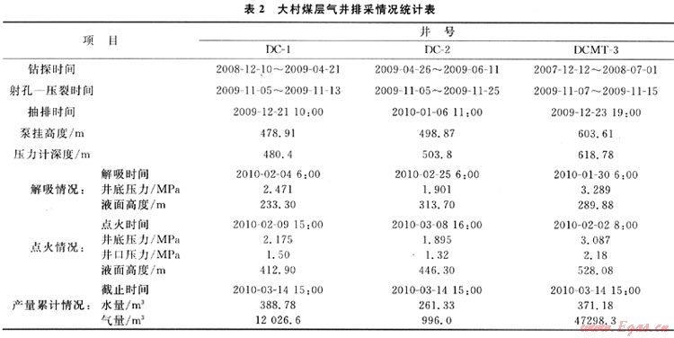 根據(jù)DC-1、DC-2、DCMT-3井水量和液面變化情況分別制訂了長沖程中等沖次、長沖程快沖次、長沖程小沖次的排采制度,較好的實現(xiàn)了3口井解吸、點火、上產(chǎn)的目的。目前各井正在穩(wěn)產(chǎn)或上產(chǎn)。