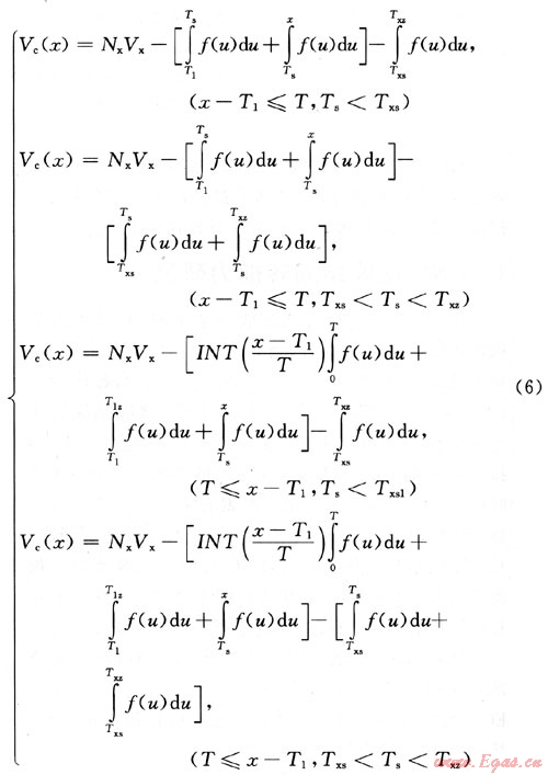 式中V(x)為任意時(shí)刻LNG接收站庫(kù)存水平,m3;Nx為L(zhǎng)NG運(yùn)輸船量,m3;T1為第一次運(yùn)輸船卸船開(kāi)始時(shí)刻;Ts為所求時(shí)刻所屬“季節(jié)”期起始時(shí)刻;T1z為第一次運(yùn)輸船卸船開(kāi)始時(shí)刻所屬季節(jié)期的終止時(shí)刻。
