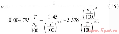 過熱蒸汽不同于理想氣體,不能通過理想氣體狀態(tài)方程來計(jì)算其密度,只能用以溫度和壓力為自變量的近似公式來計(jì)算其密度。式(16)是過熱蒸汽密度計(jì)算式之一[9]41。