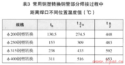 2 鋼塑轉(zhuǎn)換焊接過(guò)程中焊口處溫度確定