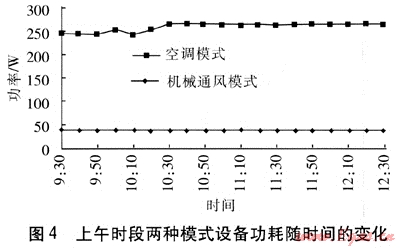 ② 機(jī)械通風(fēng)模式的設(shè)備功耗是空調(diào)模式的15%左右。
