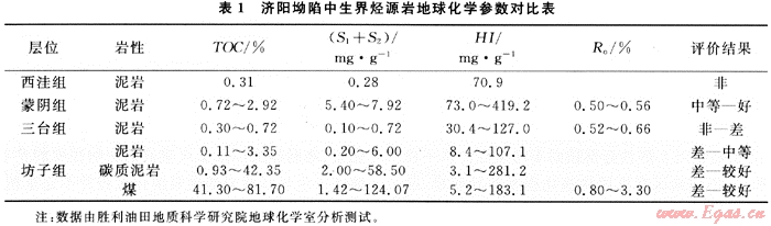 有機質(zhì)豐度是評價烴源巖非常重要的指標之一,關(guān)系到烴源巖是否具有形成工業(yè)性油氣聚集的潛力。分析測試結(jié)果表明,濟陽坳陷的蒙陰組與坊子組有機質(zhì)豐度相對較高(表1)。