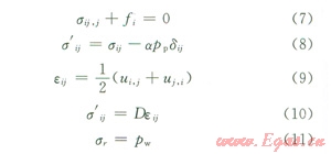 根據(jù)多孔介質(zhì)彈性理論,并視井壁穩(wěn)定問題為平面應(yīng)變問題,則相應(yīng)的平衡方程、幾何方程、本構(gòu)方程以及邊界條件分別為: