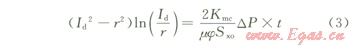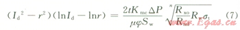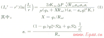 不難看出式(6)已經(jīng)消除了可變膠結(jié)指數(shù)的影響,進一步證明了“當其他條件不變時,鉆井液濾液侵入地層的深度主要受泥餅滲透率和地層的孔滲特性兩方面因素的控制,這點與非裂縫性砂泥巖地層比較類似”的觀點是經(jīng)得起推敲的。再將式(6)帶入式(3)可以得到: