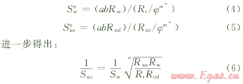 由于阿爾奇公式中的膠結(jié)指數(shù)m是針對均質(zhì)地層而設(shè)計的,針對網(wǎng)狀裂縫系統(tǒng)下的砂巖儲層,m可以用可變膠結(jié)指數(shù)m*來替代,m*與巖石總孔隙度、次生孔隙度之間存在復(fù)雜的非線性函數(shù)關(guān)系,這里就不再冗述。這樣便可以得到裂縫性砂巖儲層Sw、Sxo的表達式為: