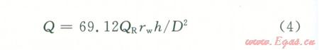 產(chǎn)能模擬法是利用蘇東35-57井儲層巖心,在地層壓力溫度條件下,沿水平方向建立不同的生產(chǎn)壓差,獲得單向滲流條件下的氣相滲流速度,再轉(zhuǎn)換成徑向滲流條件下的單井產(chǎn)能[8-10]。設(shè)實驗室?guī)r心氣體流速為QR,巖心滲流面積為A,單井日產(chǎn)氣量為Q,有效厚度內(nèi)氣體滲流面積為2πrh,D為試驗巖心的直徑。則可得: