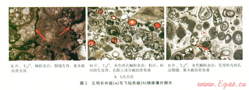 從構(gòu)造演化來看,元壩飛二段沉積時(shí)期相對(duì)于鄰區(qū)二郎廟及龍崗地區(qū)地貌較低,只發(fā)育淺灘相鮞粒灰?guī)r,沒有明顯的暴露作用,白云石化作用很弱,石灰?guī)r壓實(shí)壓溶作用和膠結(jié)作用強(qiáng)烈,巖石很快致密,缺乏酸性流體有效運(yùn)移的通道。酸性流體的溶蝕作用很弱,多數(shù)巖石未見明顯的溶蝕現(xiàn)象,一方面可能與巖石致密化早、酸性流體運(yùn)移不暢有關(guān),另一方面也許與地層中酸性流體缺乏有關(guān),從而不能大面積地發(fā)生廣泛而充分的溶蝕作用。