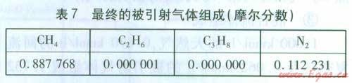 ②最終被引射氣體組成及相關(guān)數(shù)據(jù)最終的被引射氣體組成見表7。