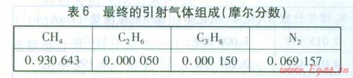 ①最終引射氣體組成及相關(guān)數(shù)據(jù) 最終引射氣體組成見表6。