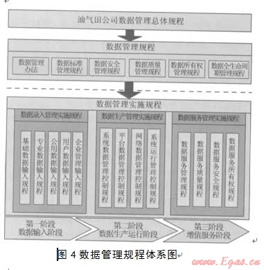 數(shù)據(jù)標(biāo)準(zhǔn)是系統(tǒng)建設(shè)的依據(jù),按照統(tǒng)一的數(shù)據(jù)標(biāo)準(zhǔn)進(jìn)行系統(tǒng)建設(shè)是保證數(shù)據(jù)準(zhǔn)確性和一致性的基礎(chǔ)。在數(shù)據(jù)管理方面,油氣田公司需制訂以下企業(yè)內(nèi)部標(biāo)準(zhǔn):①企業(yè)數(shù)據(jù)模型,描述企業(yè)勘探開發(fā)所有核心數(shù)據(jù)及其相互關(guān)系的統(tǒng)一全局視圖,是所有系統(tǒng)建設(shè)必須遵守的重要依據(jù);②數(shù)據(jù)編碼,其體現(xiàn)在企業(yè)業(yè)務(wù)流程的各個(gè)環(huán)節(jié),它定義了企業(yè)所有管理對象的唯一編碼,目的是實(shí)現(xiàn)企業(yè)業(yè)務(wù)流程的標(biāo)準(zhǔn)化;③企業(yè)數(shù)據(jù)指標(biāo)體系,統(tǒng)一企業(yè)數(shù)據(jù)的指標(biāo)解釋,規(guī)范企業(yè)經(jīng)營決策分析應(yīng)用,保證數(shù)據(jù)的唯一性和準(zhǔn)確性。