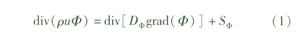 與火焰燃燒一樣,天然氣的無焰氧化包含湍流流動(dòng),本文采用標(biāo)準(zhǔn)的可壓縮k-ε模型。穩(wěn)態(tài)形式的動(dòng)量、能量和物種輸運(yùn)方程可寫成以下通用形式: