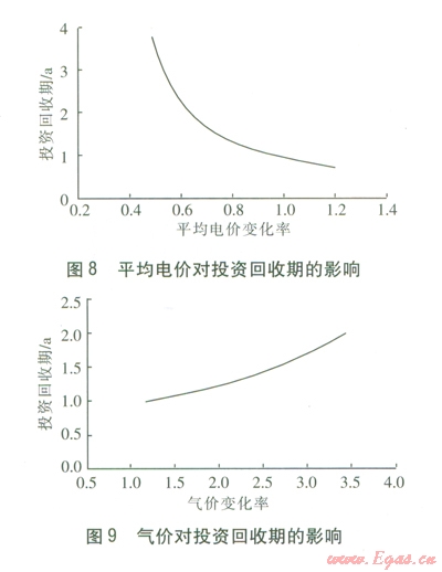 4 電價(jià)、氣價(jià)對投資回收期的影響
