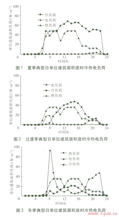夏季。冷負(fù)荷在開始上班的時(shí)段出現(xiàn)一個(gè)小高峰,然后隨著人員的增多和室外溫度的上升而增大。午后冷負(fù)荷開始逐漸下降,直到加班人員離開辦公樓?;緵]有熱負(fù)荷。