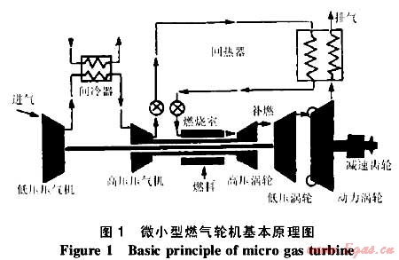 微小型燃氣輪機的基本原理及結構與大中型燃氣輪機一致,主要由壓氣機、燃燒室、渦輪、動力渦輪等結構組成。微小型燃氣輪機功率較低,如果單純采用簡單循環(huán)會導致熱效率偏低。所以在微小型燃氣輪機中通常采用間冷、回熱、補燃等復雜循環(huán)手段來提高整機性能水平。
