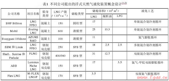 液化天然氣浮式生產(chǎn)儲卸裝置即 LNG FPSO,通常稱為 Floating LNG,簡寫為 FLNG。FLNG 可采用駁船或 LNG 貨輪改裝,直接停泊在氣田上方進行作業(yè),能夠避免陸上液化工廠建設(shè)可能對環(huán)境造成的污染問題。此外,該裝置便于遷移,可重復(fù)使用,當(dāng)開采的氣田衰竭后,可以遷移到新的氣田使用,尤其適合于邊際氣田的開發(fā)。FLNG 的開發(fā)研究最早始于20世紀(jì)70年代早期,90年代之后,隨著天然氣工業(yè)的不斷發(fā)展,天然氣需求量的不斷增加,天然氣價格的不斷上升和海洋石油工程技術(shù)的不斷進步,海上邊際氣田日益受到重視,國際各大石油公司和造船公司均投入到 FLNG 的開發(fā)中來,提出多種概念設(shè)計,并在FLNG 船體與產(chǎn)品儲存方式、液化工藝、換熱器形式、裝卸方式等方面取得一定進展,使其開發(fā)成為可能。