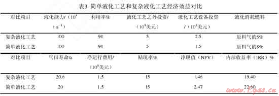 David Franklin等[4]對 FLNG 采用簡單液化工藝和復(fù)雜液化工藝的經(jīng)濟效益進行比較,發(fā)現(xiàn)采用簡單液化工藝效益更好(表3),液化能力同為100×104t·a-1的浮式天然氣液化裝置項目,采用簡單液化工藝的凈現(xiàn)值是采用復(fù)雜液化工藝凈現(xiàn)值的1.69倍,內(nèi)部收益率高出3.2%??梢姡c陸上 LNG工廠不同,FLNG 對初始投資更敏感。簡單液化工藝具有占用甲板面積小、設(shè)備少、檢修時間短、可在有限甲板空間上獲得較高產(chǎn)量等優(yōu)點,更適用于 FLNG。