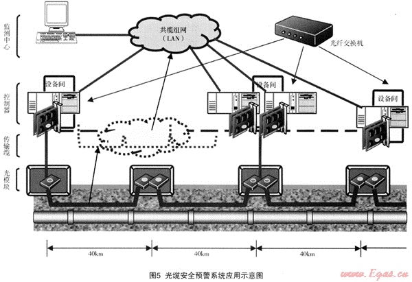 光纜振動(dòng)監(jiān)測系統(tǒng)在管道安全預(yù)警系統(tǒng)應(yīng)用如圖5。