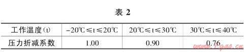 1.2.3 聚乙烯燃?xì)夤艿赖墓ぷ鳒囟瘸^20℃時(shí),還需要考慮管道燃?xì)馍邔τ谄渥陨沓惺苣芰Φ挠绊懀簿褪钦f,溫度的勝過對造成其允許的最大工作壓力值受到影響而降低,具體的降低系數(shù)如表2。