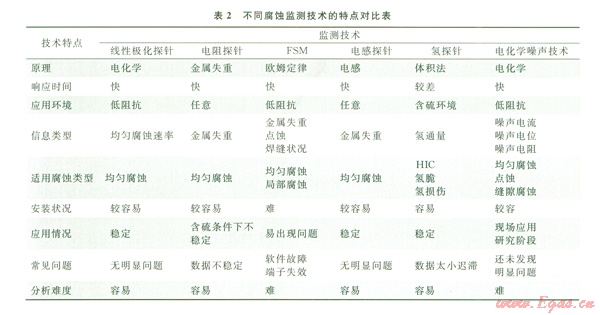5)電阻探針、電感探針、線性極化探針、腐蝕掛片及水分析等傳統(tǒng)的腐蝕監(jiān)測方法被廣泛用于高含硫氣田。FSM、氫探針技術、電化學噪聲技術等腐蝕監(jiān)測新技術在研究點蝕、縫隙腐蝕和氫致開裂等方面具有獨特的優(yōu)勢。