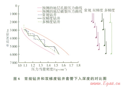 與常規(guī)鉆井和雙梯度鉆井方法相比,采用多梯度鉆井能更好地匹配地層孔隙壓力和破裂壓力窗口,有效控制井筒環(huán)空壓力在地層壓力窗口中變化,使井底壓力在較長(zhǎng)的井段內(nèi)介于地層壓力和破裂壓力之間,實(shí)現(xiàn)“移動(dòng)的海底”概念,能夠簡(jiǎn)化深水井復(fù)雜井身結(jié)構(gòu),有效地減少深水鉆井存在的問(wèn)題,實(shí)現(xiàn)安全鉆進(jìn)。