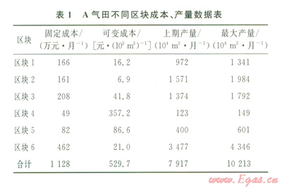 氣田調(diào)峰生產(chǎn)時(shí),一定階段內(nèi)總需求量和價(jià)格是確定的,因此在氣田不同區(qū)塊內(nèi)配產(chǎn)時(shí),成本是決定當(dāng)期效益的直接指標(biāo)。