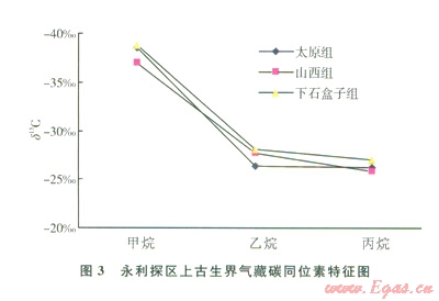 研究區(qū)上古生界天然氣中的甲烷及其同系物具有相對富穩(wěn)定同位素
