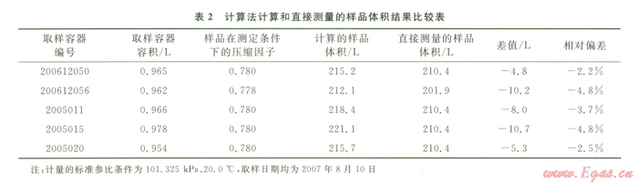 4)采用流量計直接計量樣品體積比采用壓縮因子計算樣品體積低2.2%~/4.8%,因此樣品體積不應(yīng)采用流量計直接計量,而應(yīng)采用計算法。