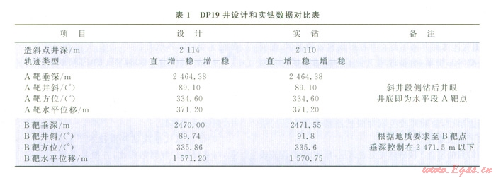 設(shè)計(jì)及實(shí)鉆數(shù)據(jù)見表l。